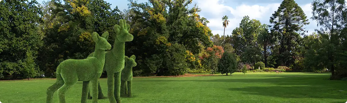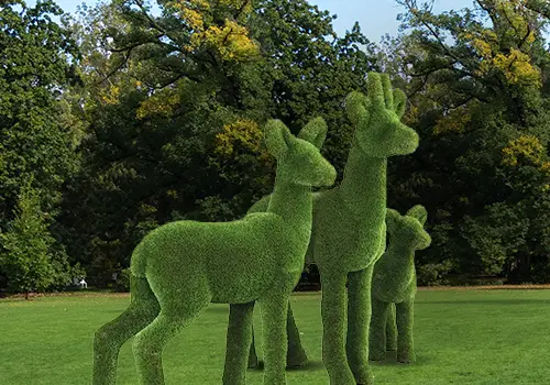 - Hosszú ideig tartó intenzív napfény és UV sugárzás esetén a műfű kissé elszíneződhet a szobrok tetején. Ha lehetőség van rá, akkor ne direkt napfényben álljon a szobor.