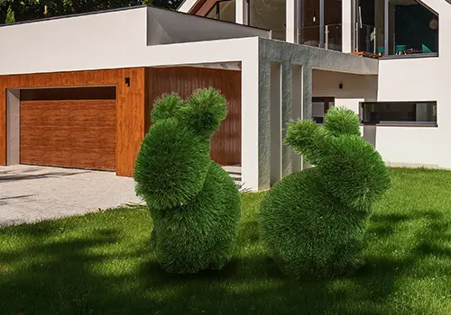- Hosszú ideig tartó intenzív napfény és UV sugárzás esetén a műfű kissé elszíneződhet a szobrok tetején. Ha lehetőség van rá, akkor ne direkt napfényben álljon a szobor.