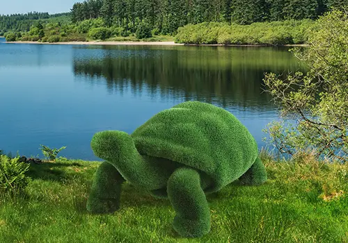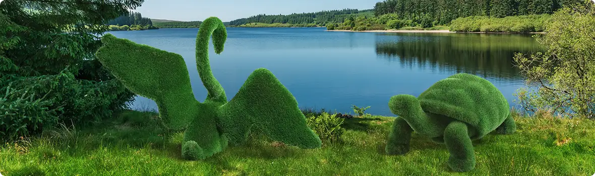 - Hosszú ideig tartó intenzív napfény és UV sugárzás esetén a műfű kissé elszíneződhet a szobrok tetején. Ha lehetőség van rá, akkor ne direkt napfényben álljon a szobor.